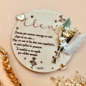 PLACA DED. FLORAL ORO «Madrina/ Padrino/ Testigo/ Dama Honor» PERSONALIZADA