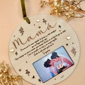 PLACA DEDICATORIA FLORAL ORO FOTO PERSONALIZADA