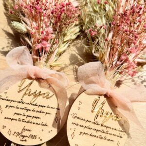 PLACA DED. FLORAL ORO «Madrina/ Padrino/ Testigo/ Dama Honor» PERSONALIZADA