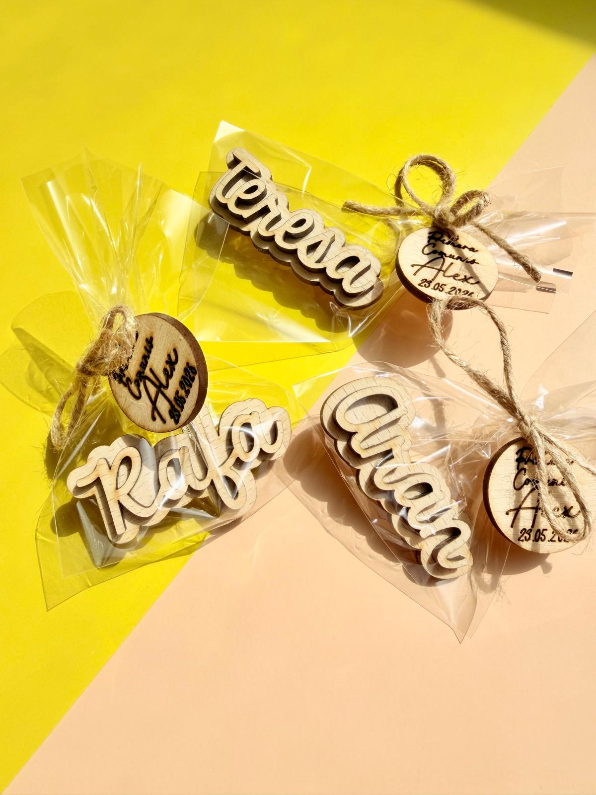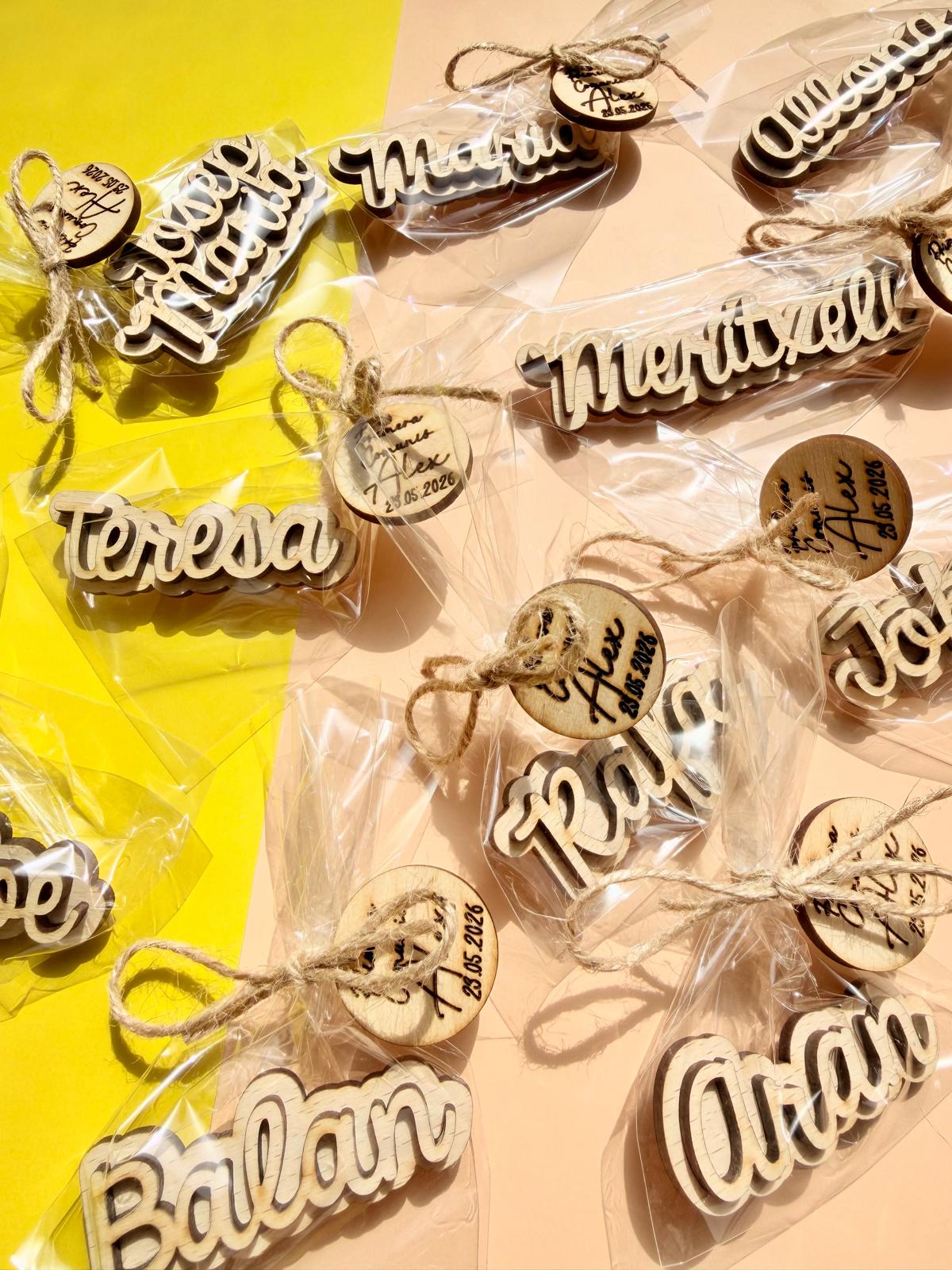 *Si has seleccionado la opción CON ENVOLTORIO, no olvides, escribirnos en el apartado «Personaliza aquí» (A continuación de la personalización de nombres) lo que quieres que pongamos en la miniplaquita del envoltorio.
