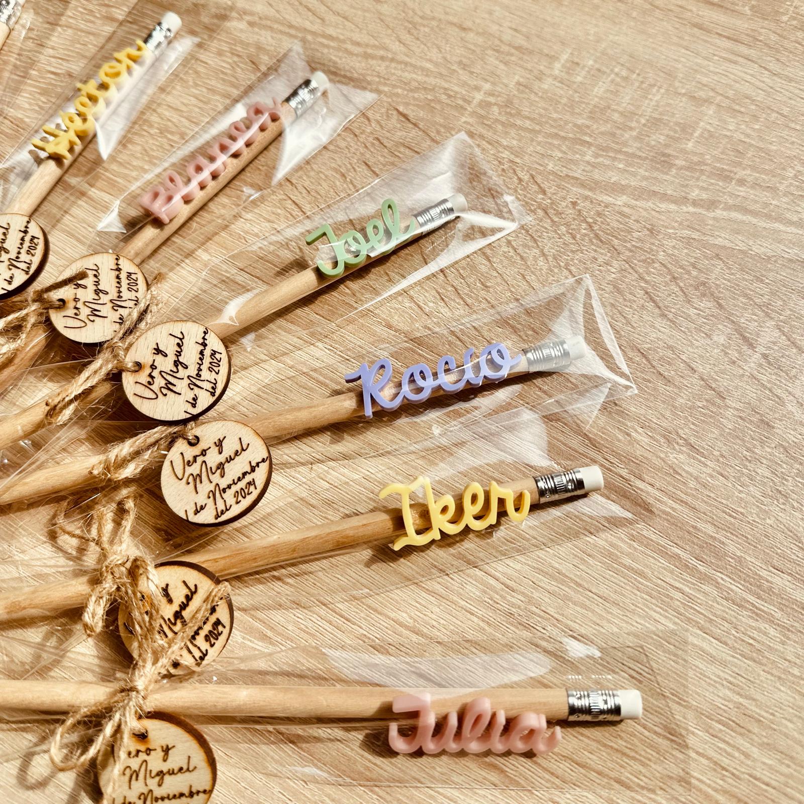 Lápices personalizados. Escoge el color que mas te guste junto con la cantidad que necesites. Posibilidad de envoltorio con una mini plaquita personalizada de madera. (+0,50€/unid).