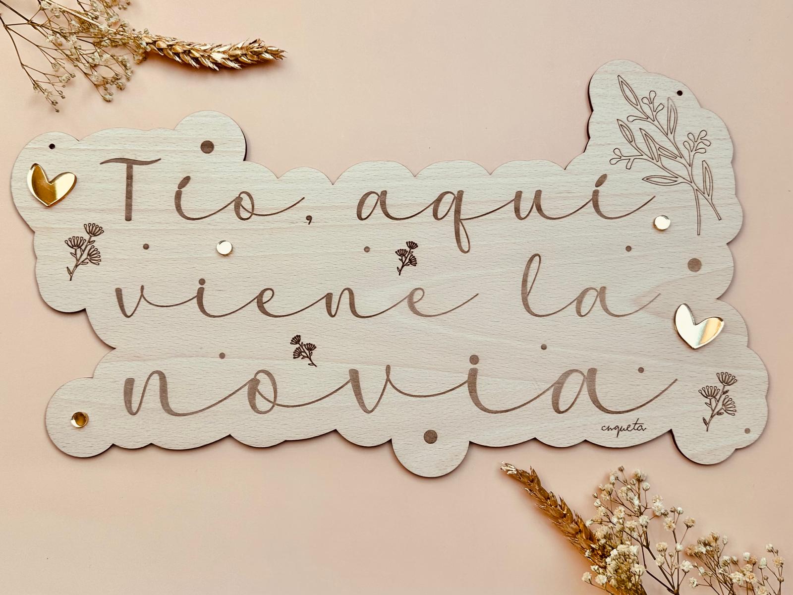 Cartelería para boda de la colección FLORAL ORO elaborada en madera de haya y metacrilato espejo dorado.