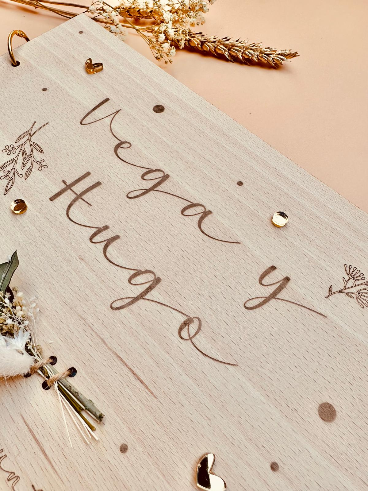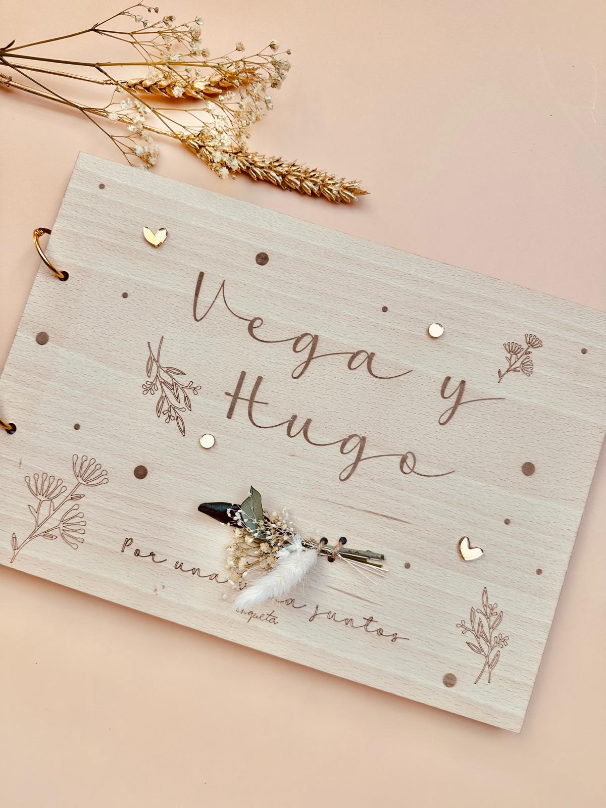 Libro de Firmas de la colección FLORAL ORO personalizado. Existen dos modelos: ORO y GRABADO LÁSER.