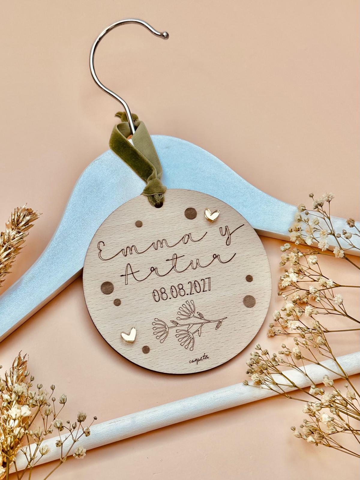 Mini placa para colgar en la percha el día de tu evento, para la sesión fotográfica.