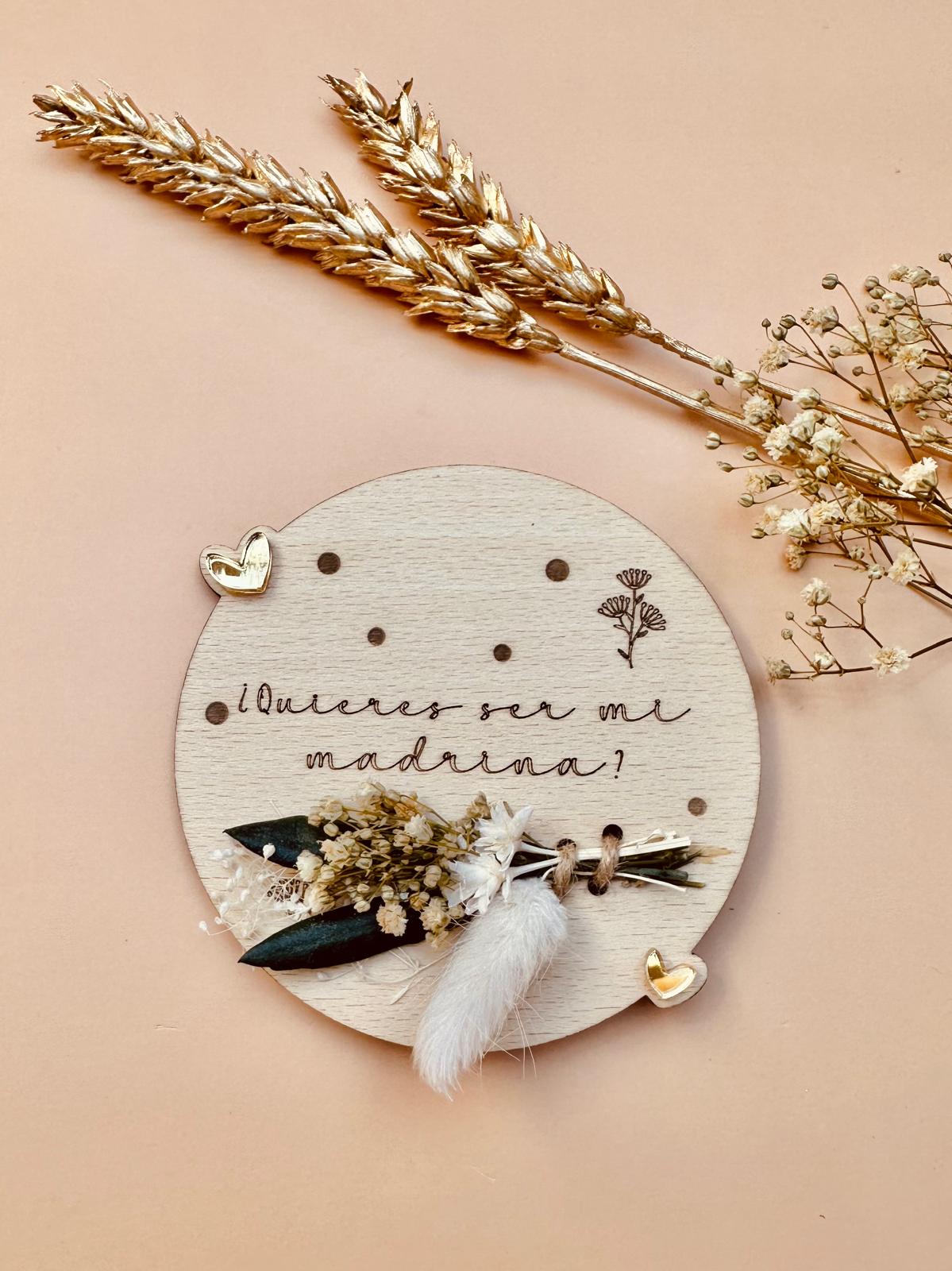 En el caso de NO quererla personalizada, se servirá el modelo ESTÁNDAR (Mini Placa únicamente con la pregunta, sin nombres ni fechas, con los mismos tonos de flor).