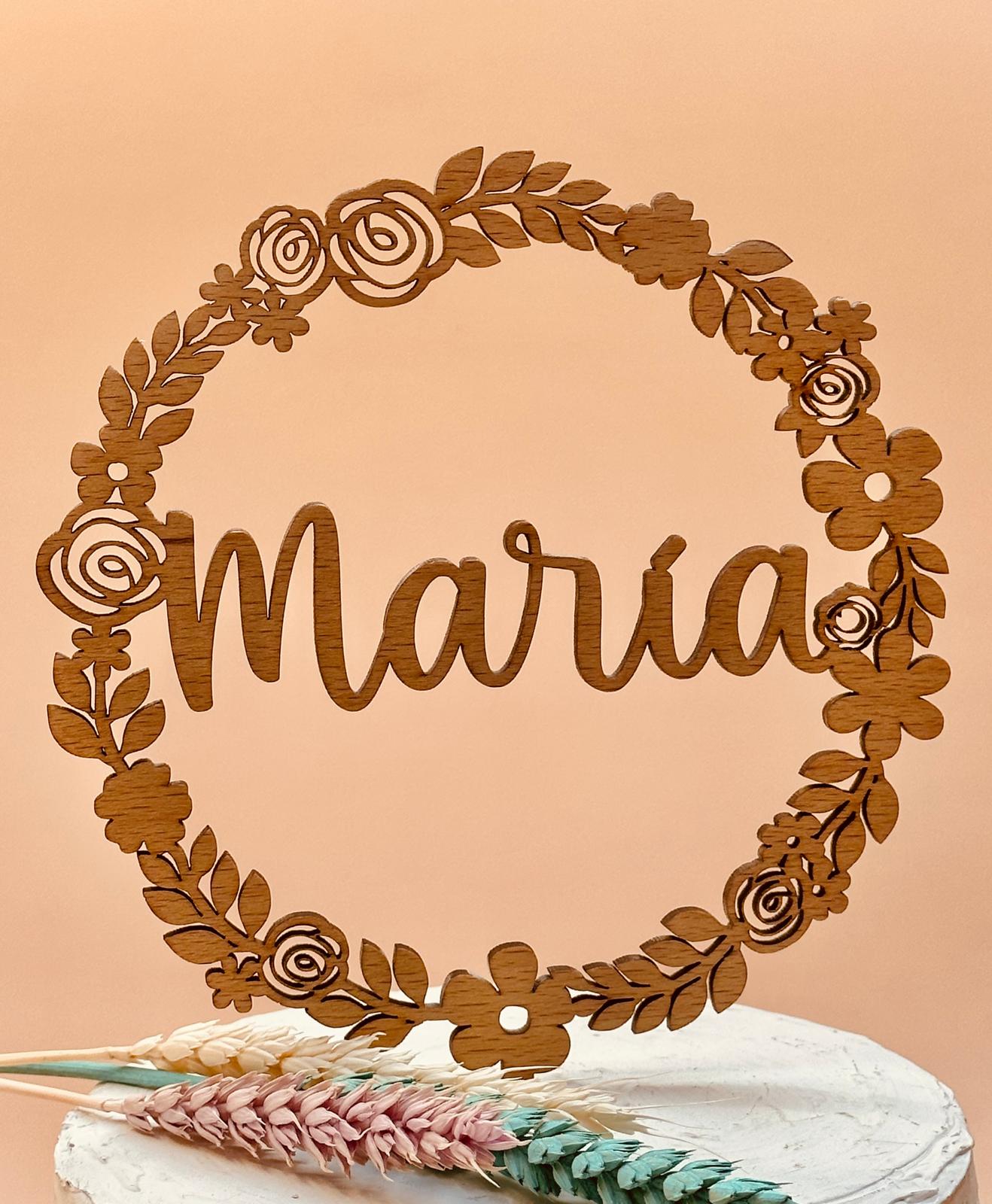 Topper para tarta modelo «FLORAL» para comunión, personalizado con el nombre del niño/niña.