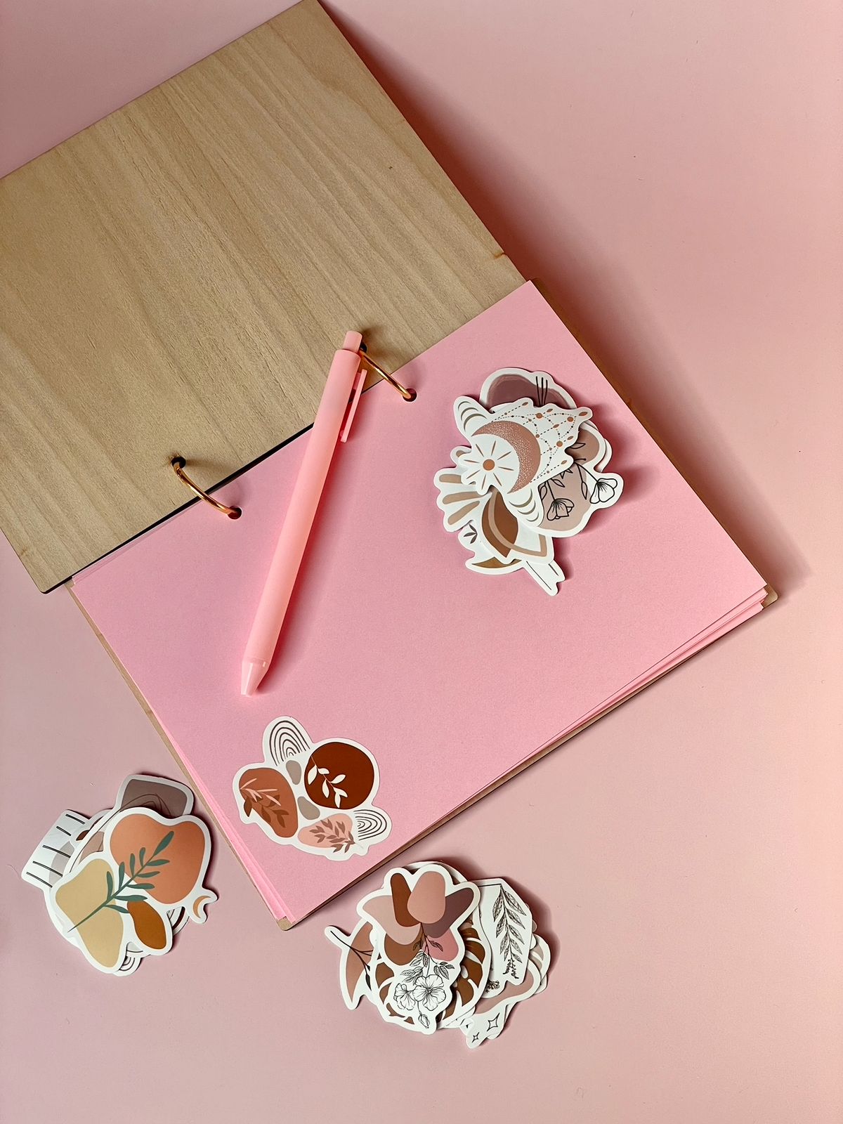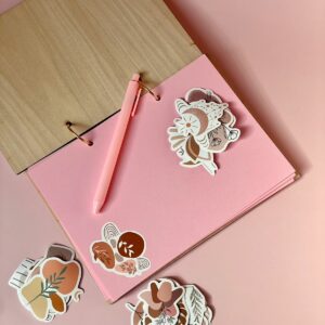 En su interior lleva 20 hojas tipo cartulina de color rosa con un set de pegatinas para decorar su interior.