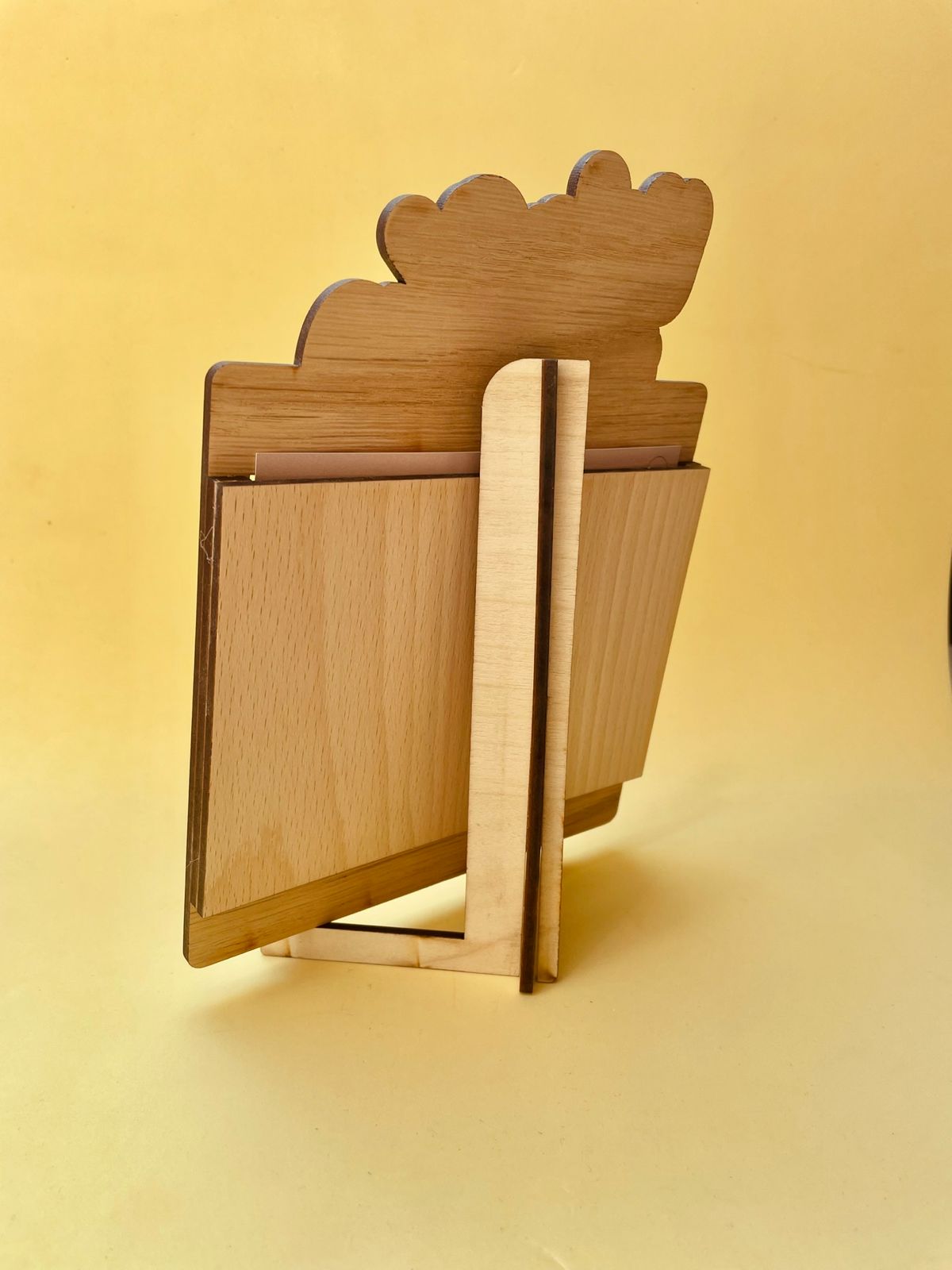 Este año hemos mejorado el diseño trasero del marco, ya que hemos acoplado una trasera para no tener que pegar la foto, únicamente solo tienes que introducirla en la ranura correspondiente.