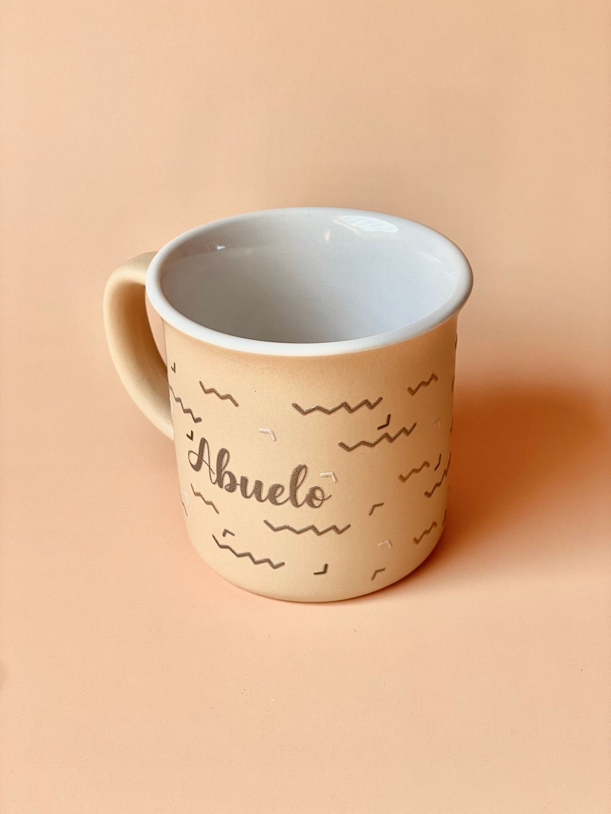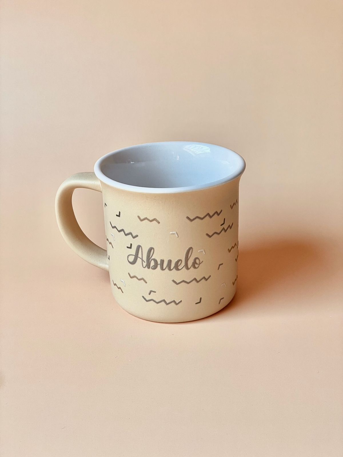 Taza beige de la Colección CÁPSULA de «Abuelo». Taza en cerámica con decoración en DTF (dibujo no apto para microondas ni lavavajillas. Solo lavado a mano).