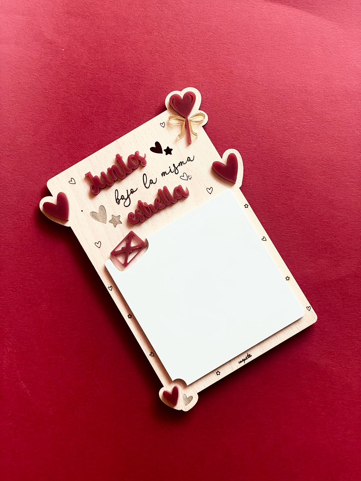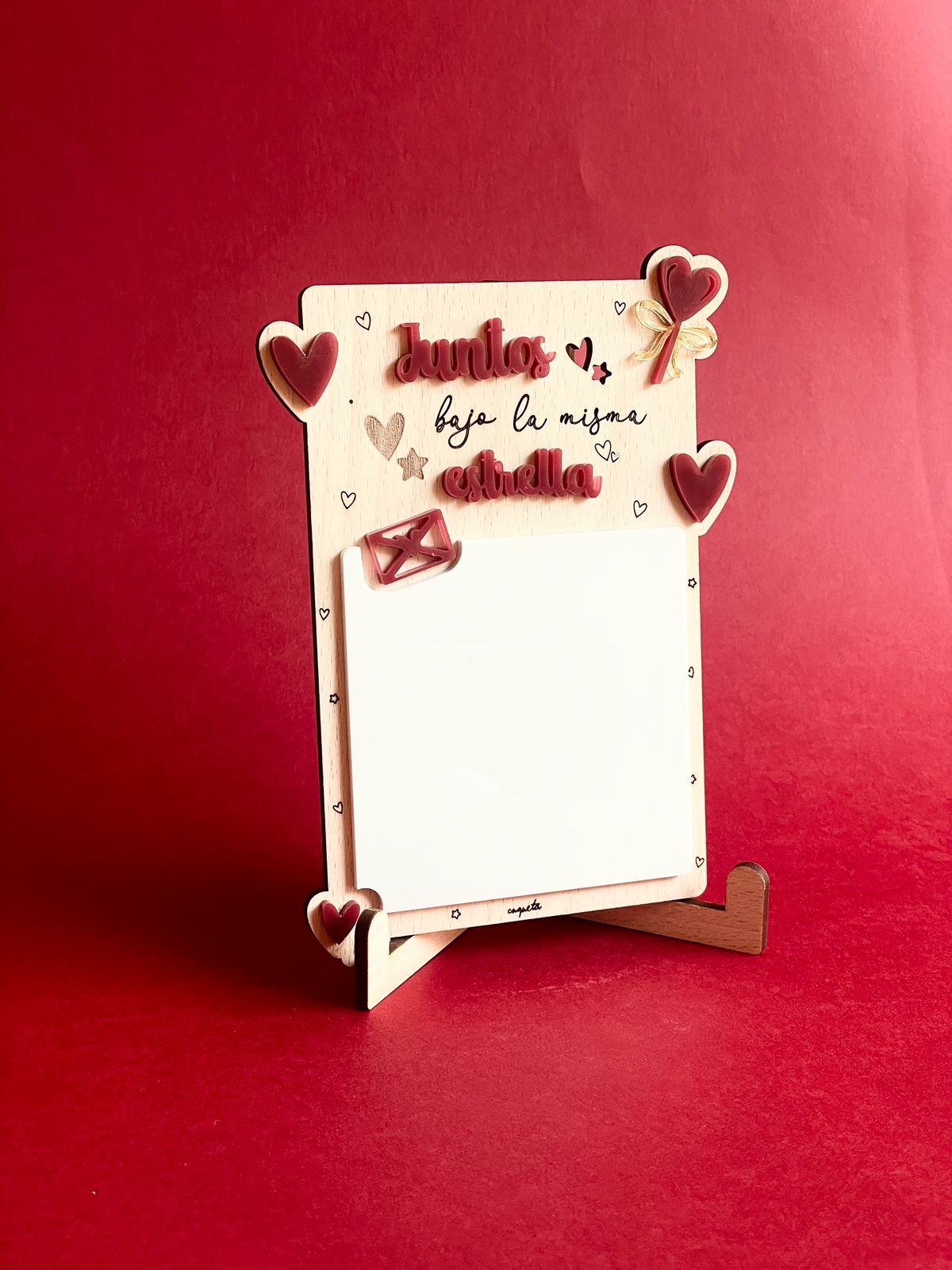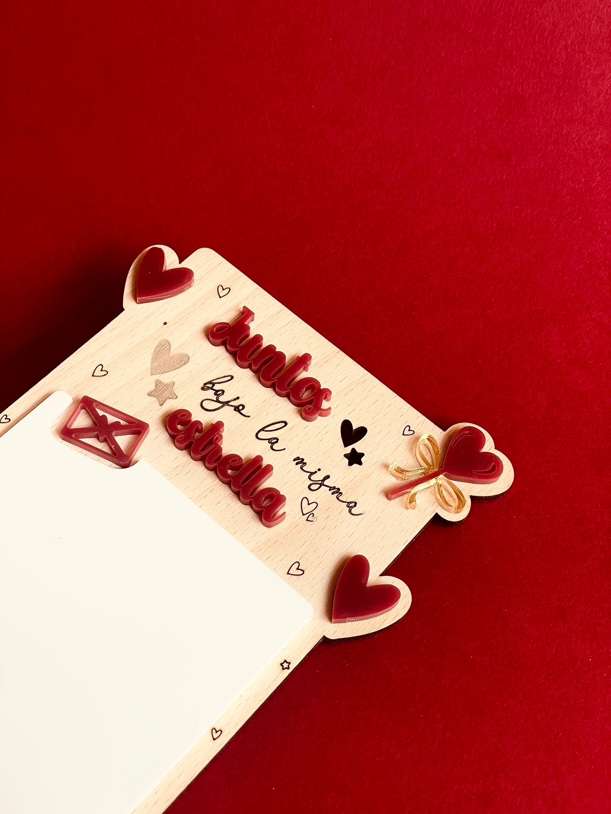 Gracias a su imán trasero, puedes colocarla fácilmente en la nevera, superficies metálicas o espacios especiales del hogar, mientras su base de madera de haya, aporta calicez y un toque decorativo único. Perfecto para escribir mensajes de amor, recordatorios diarios, frases bonitas o una nota sorpresa para esa persona especial que comparte tu vida.