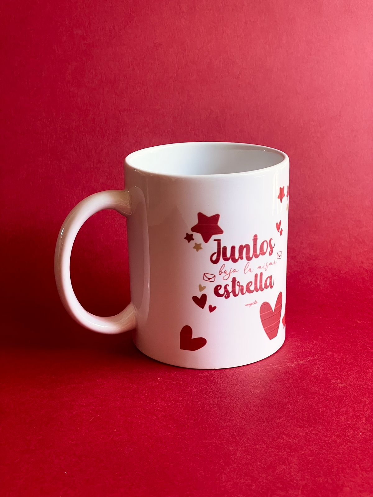 Disfruta de tus momentos más especiales con nuestra taza de cerámica blanca sublimada de la colección «Juntos Bajo la Misma Estrella». Un diseño único que captura la esencia del amor y la conexión, perfecto para regalar o para disfrutar en tu día a día.