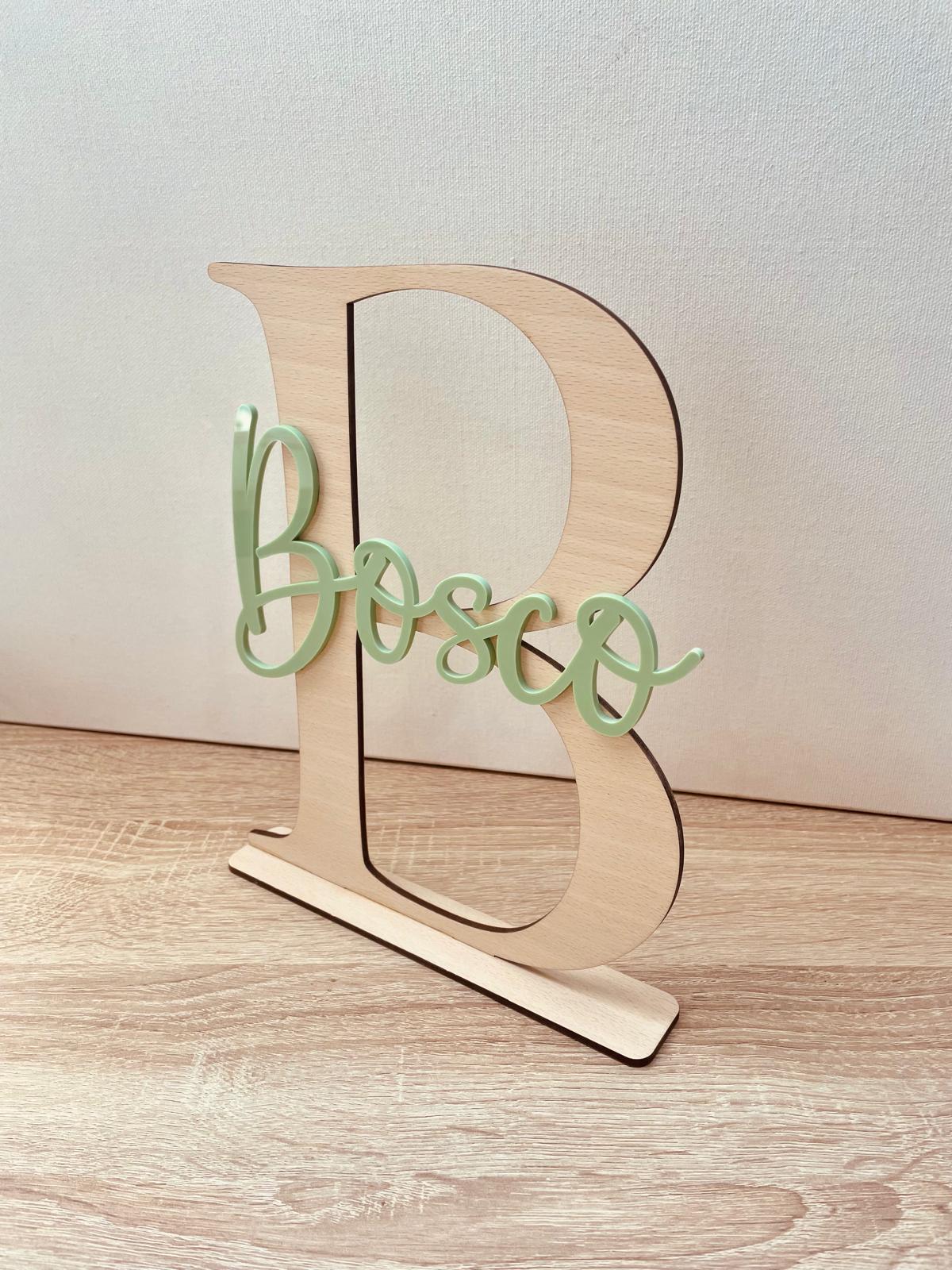 Transforma cualquier rincón de tu hogar o habitación infantil con un toque personal y elegante. Letra de madera de haya de 25 cm de altura, acompañada del nombre personalizado en metacrilato del color que mas te guste. Incluye peana. Es perfecta para agregar personalidad y estilo a tu decoración.