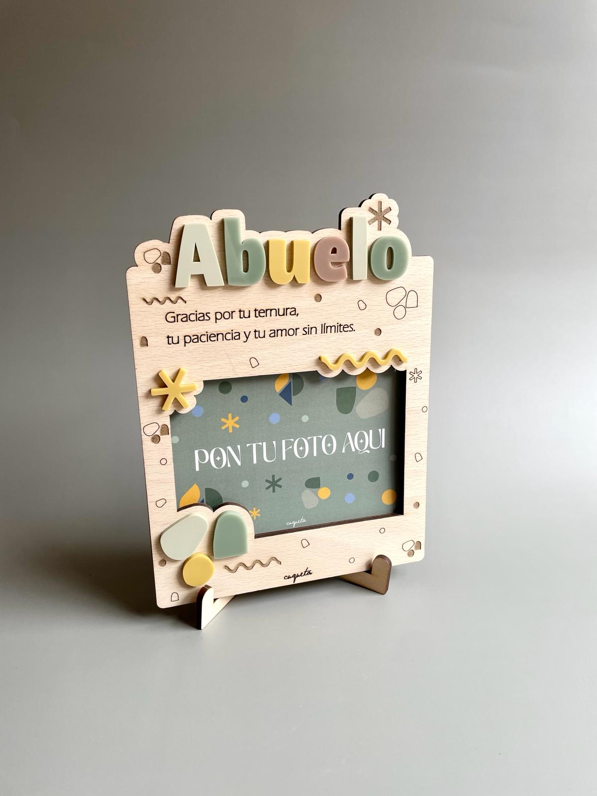 Si quieres personalizar el marco de fotos para Abuelo, escríbenos en el apartado «Personaliza aquí», el nombre de quien lo regala o en su defecto, una frase muy corta (máx 4/5 palabras).