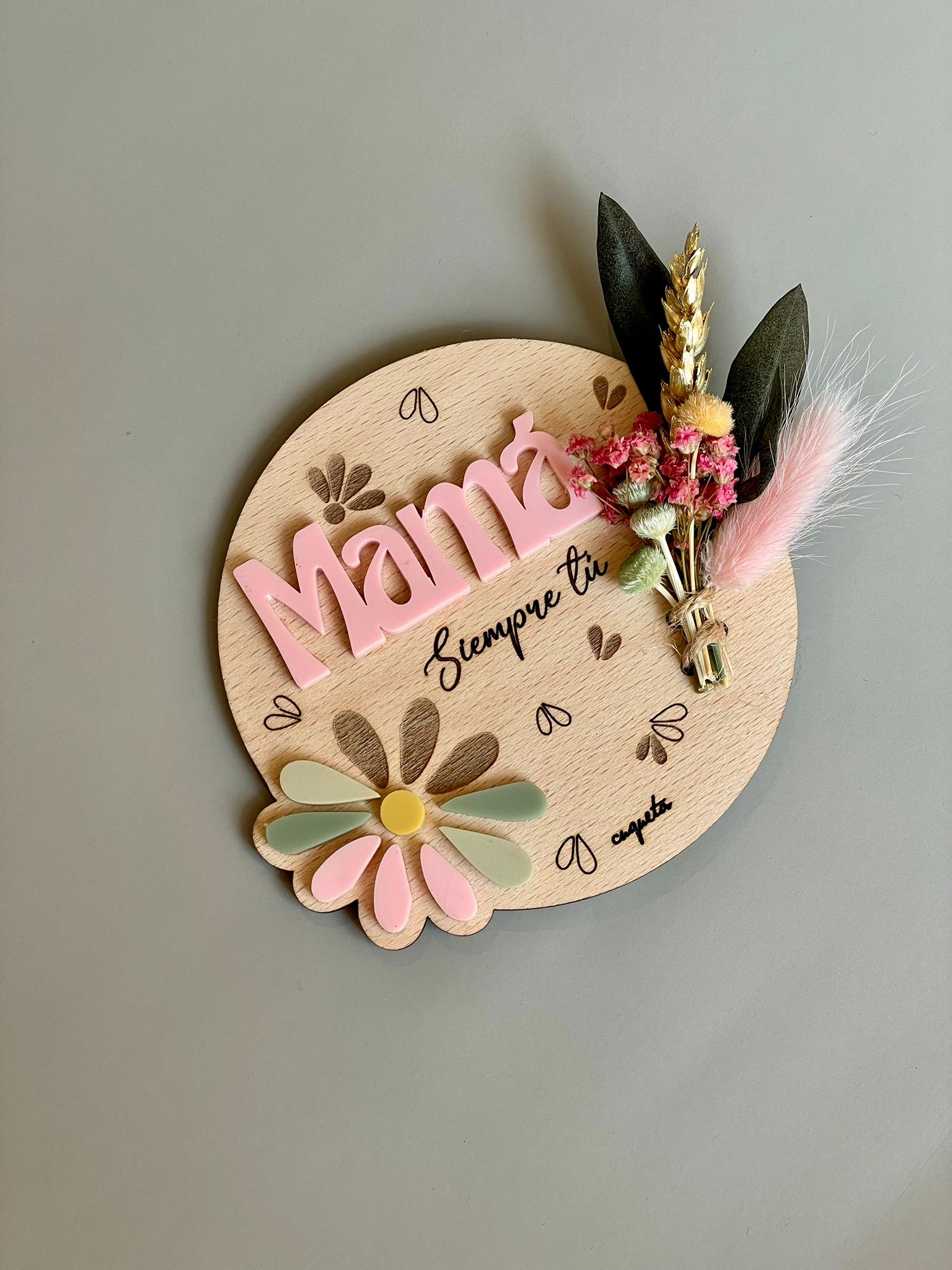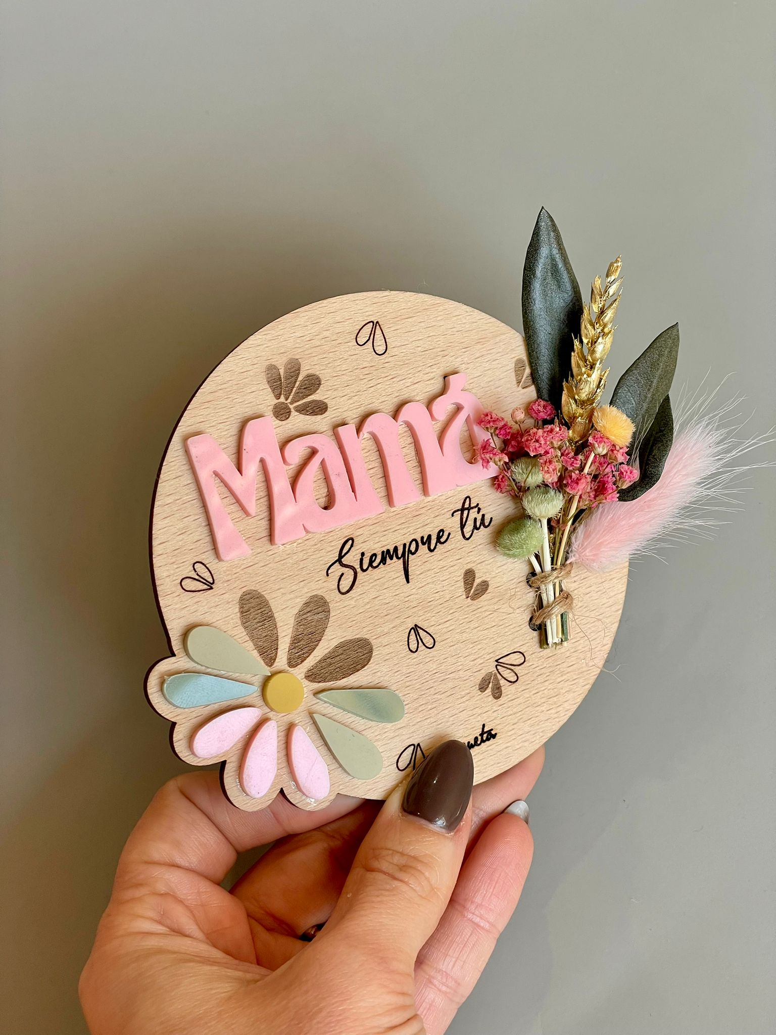 Si quieres personalizar la mini placa para Mamá, escríbenos en el apartado «Personaliza aquí», el nombre de quien lo regala (máx. 1/2 palabras, mas no cabe).