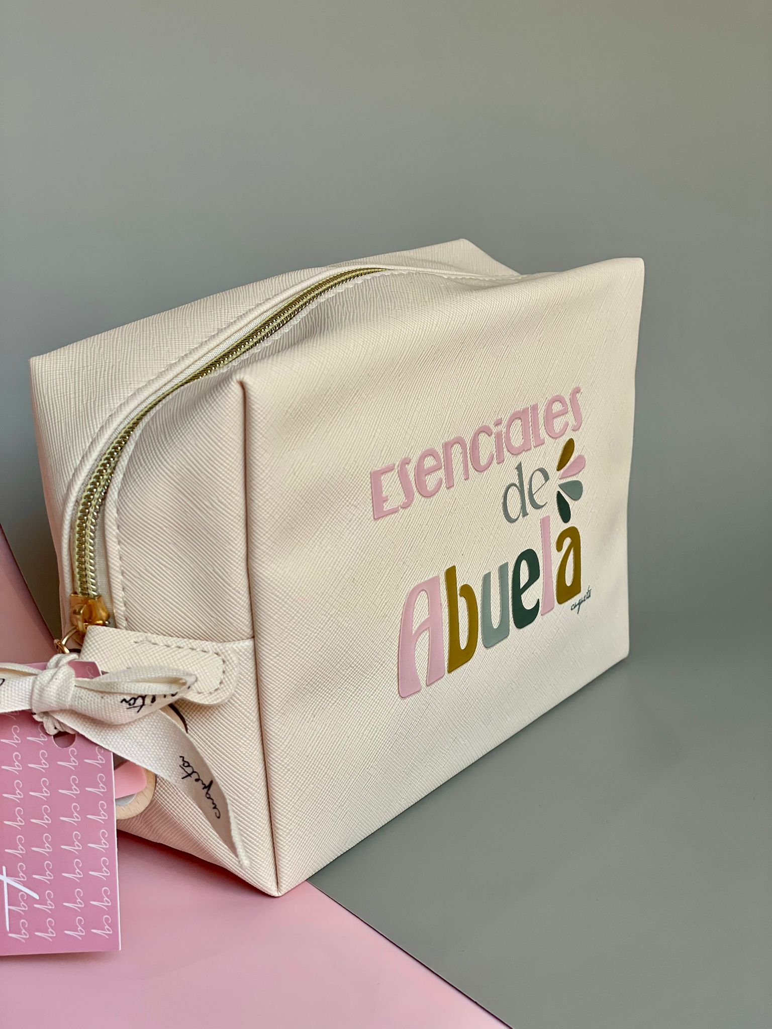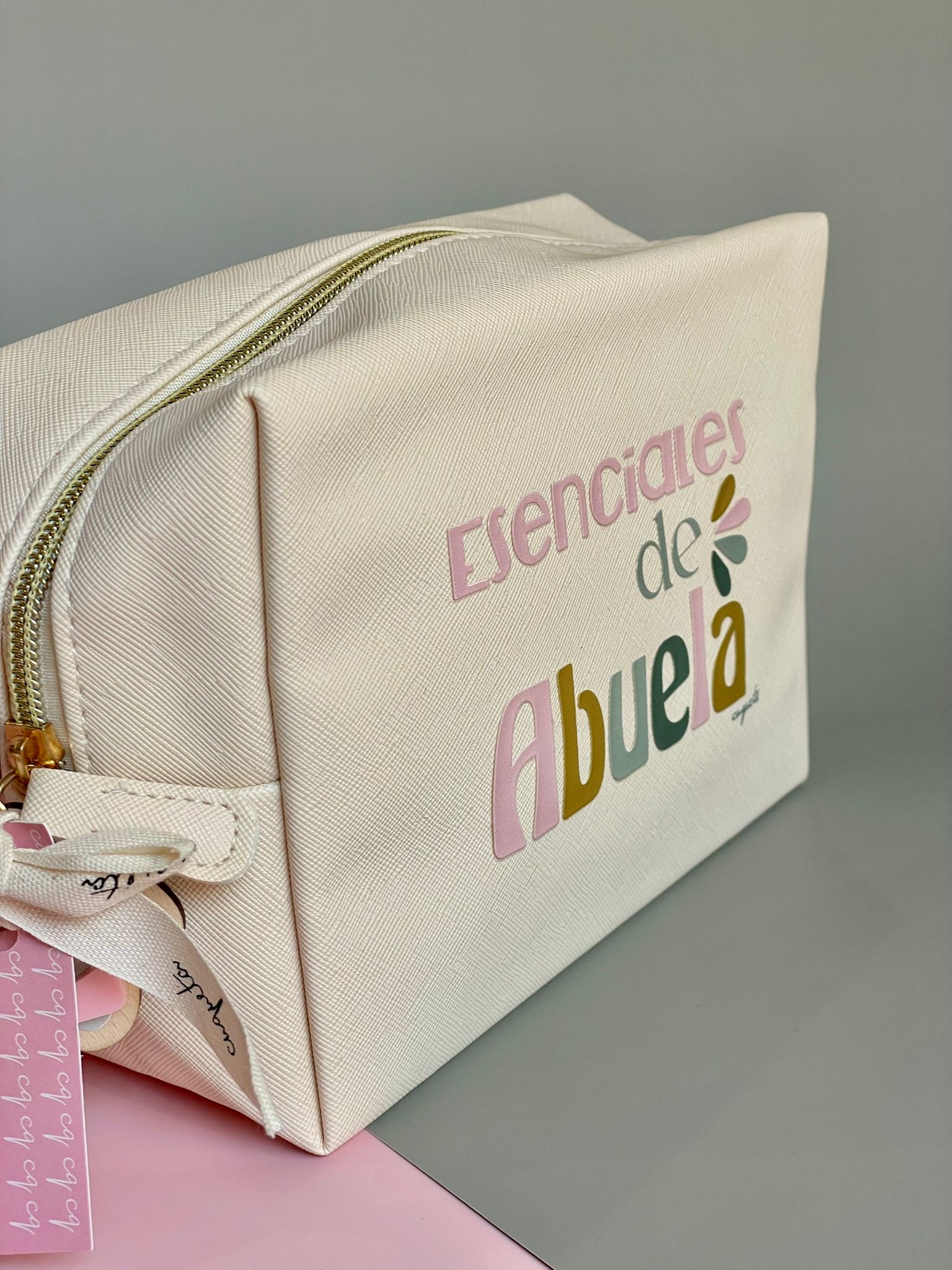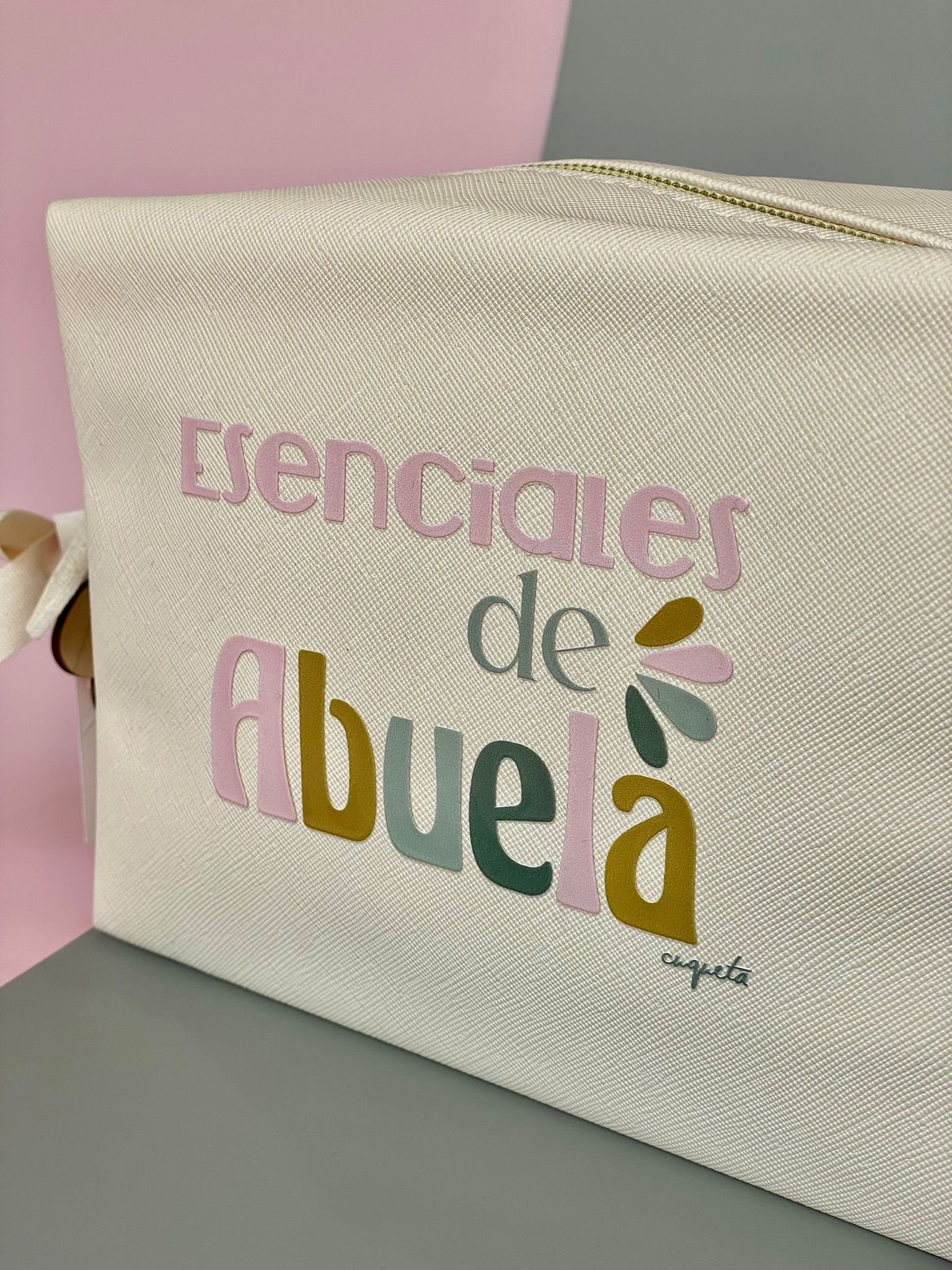 Decorado con la frase «Esenciales de Abuela» en DTF.