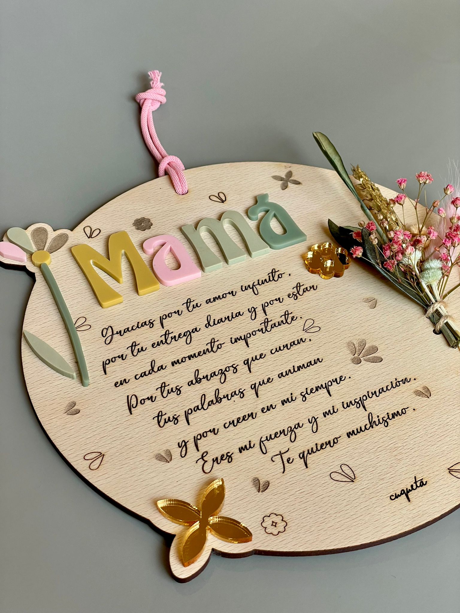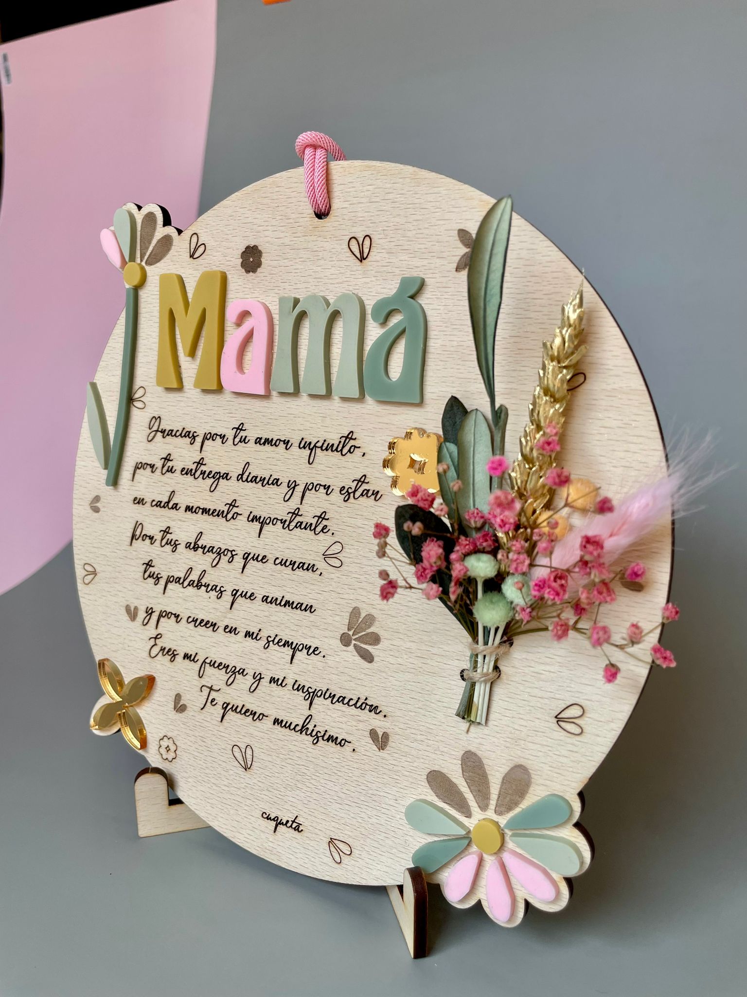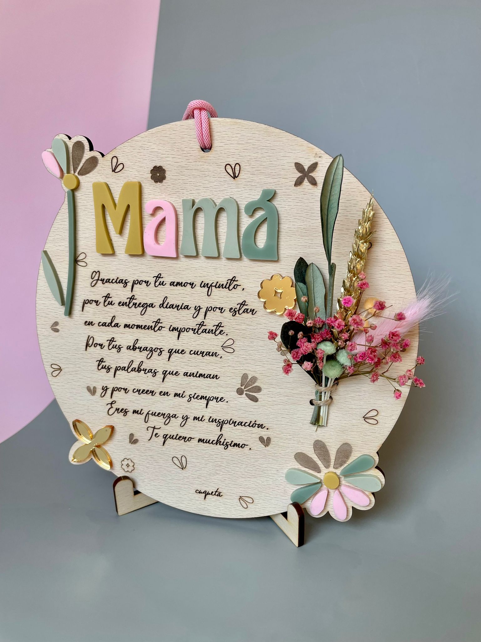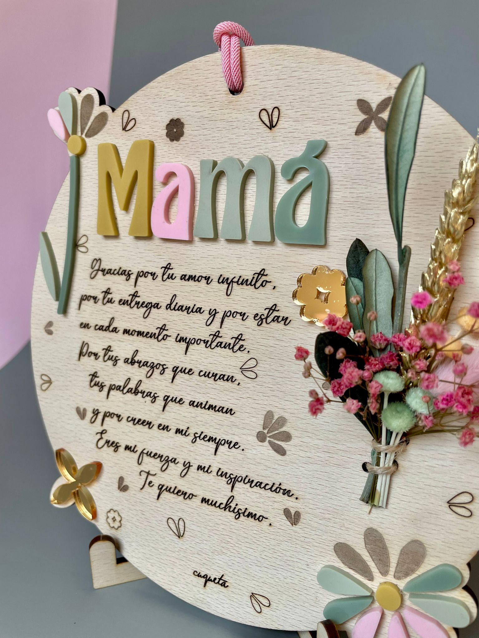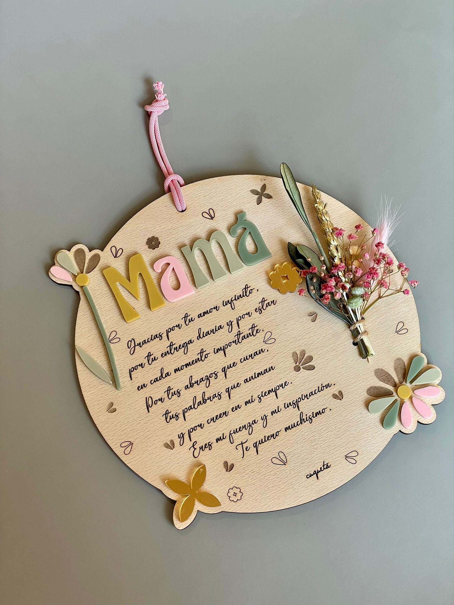 Esta placa dedicatoria de 20 cm de diámetro, elaborada en madera de haya natural, es mucho más que un regalo: es un homenaje eterno al amor, la fuerza y la presencia de mamá.