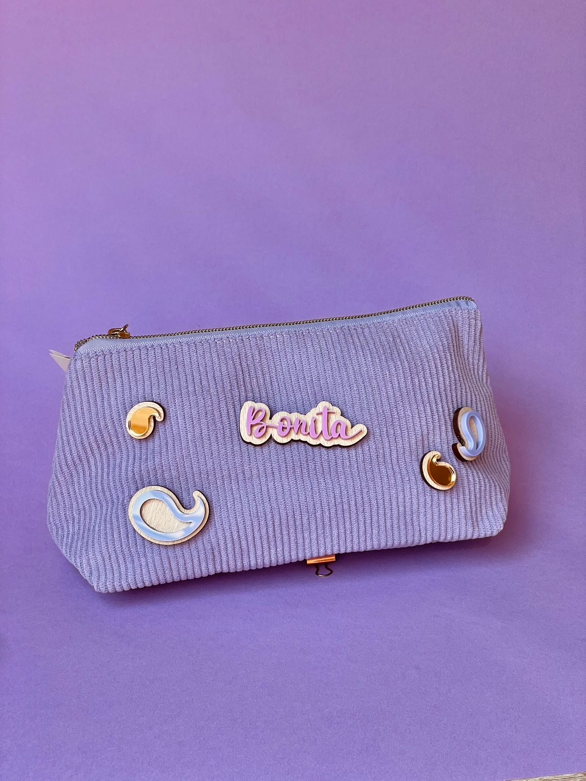 Neceser pana en color lila con 5 pins de la misma colección.